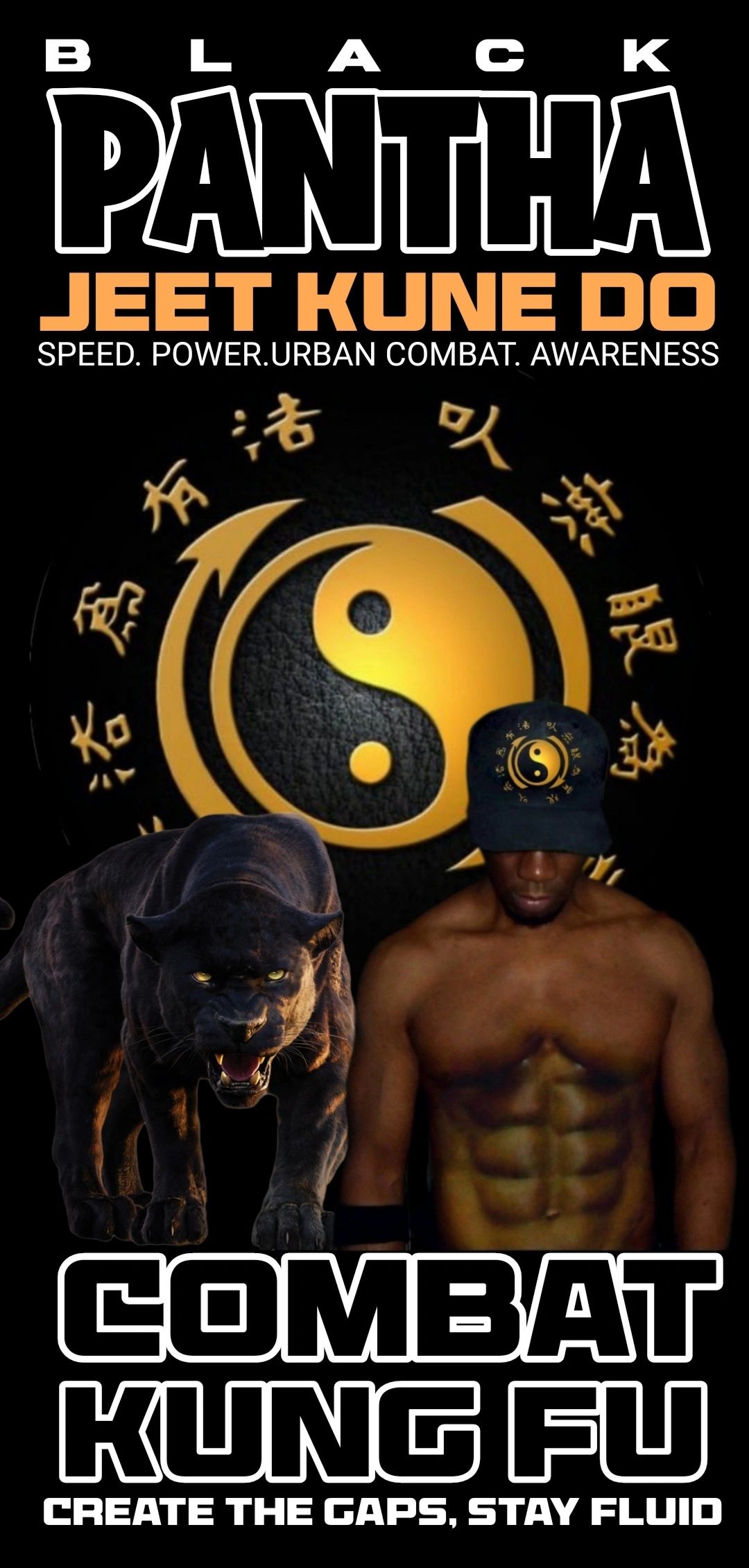 BLACK PANTHA JKD COMBAT KUNGFU is a Mixed Martial Arts SELF-DEFENSE System designed for real life unpredictable Non-consensual physical Street confrontations. The intention is to use explosive Offensive action as your self-defense.This not a Combat Sport. Black Pantha Combat kung is based on the Direction,concepts philosophy, Principles and fighting system developed by Kung Fu legend BRUCE LEE.